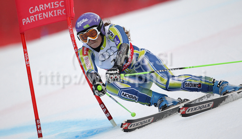 : Winner Tina Maze of Slovenia skiing in second run of Women giant slalom race of FIS alpine skiing World Championships in Garmisch-Partenkirchen, Germany. Women giant slalom race of FIS alpine skiing World Championships, was held on Thursday, 17th of February 2011, in Garmisch-Partenkirchen, Germany.