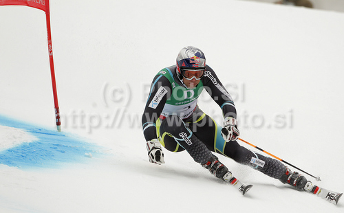 : Aksel Lund Svindal of Norway skiing in first run of Men giant slalom race of FIS alpine skiing World Championships in Garmisch-Partenkirchen, Germany. Men giant slalom race of FIS alpine skiing World Championships, was held on Friday, 18th of February 2011, in Garmisch-Partenkirchen, Germany.