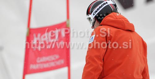 : Andreas Romar of Finland on inspection of course before second run of Men giant slalom race of FIS alpine skiing World Championships in Garmisch-Partenkirchen, Germany. Men giant slalom race of FIS alpine skiing World Championships, was held on Friday, 18th of February 2011, in Garmisch-Partenkirchen, Germany.