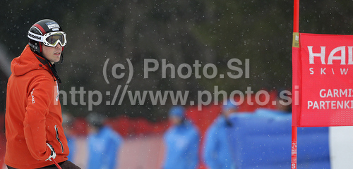 : Andreas Romar of Finland on inspection of course before second run of Men giant slalom race of FIS alpine skiing World Championships in Garmisch-Partenkirchen, Germany. Men giant slalom race of FIS alpine skiing World Championships, was held on Friday, 18th of February 2011, in Garmisch-Partenkirchen, Germany.