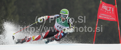 : skiing in second run of Men giant slalom race of FIS alpine skiing World Championships in Garmisch-Partenkirchen, Germany. Men giant slalom race of FIS alpine skiing World Championships, was held on Friday, 18th of February 2011, in Garmisch-Partenkirchen, Germany.