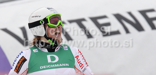 : Samu Torsti of Finland reacts in finish of second run of Men giant slalom race of FIS alpine skiing World Championships in Garmisch-Partenkirchen, Germany. Men giant slalom race of FIS alpine skiing World Championships, was held on Friday, 18th of February 2011, in Garmisch-Partenkirchen, Germany.