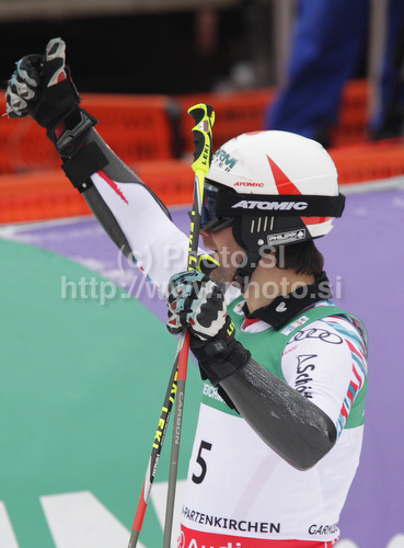 : Third placed Philipp Schoerghofer of Austria reacts in finish of second run of Men giant slalom race of FIS alpine skiing World Championships in Garmisch-Partenkirchen, Germany. Men giant slalom race of FIS alpine skiing World Championships, was held on Friday, 18th of February 2011, in Garmisch-Partenkirchen, Germany.
