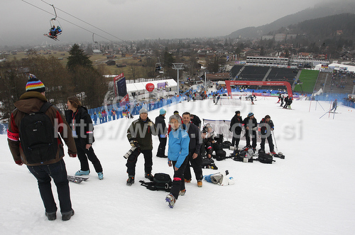: Photographers on position before start of first run of Women slalom race of FIS alpine skiing World Championships in Garmisch-Partenkirchen, Germany. Women slalom race of FIS alpine skiing World Championships, was held on Saturday, 19th of February 2011, in Garmisch-Partenkirchen, Germany.