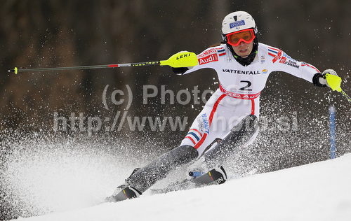 : Nastasia Noens of France skiing in first run of Women slalom race of FIS alpine skiing World Championships in Garmisch-Partenkirchen, Germany. Women slalom race of FIS alpine skiing World Championships, was held on Saturday, 19th of February 2011, in Garmisch-Partenkirchen, Germany.