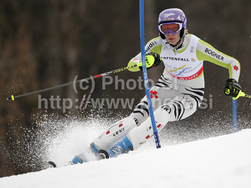 : Maria Riesch of Germany skiing in first run of Women slalom race of FIS alpine skiing World Championships in Garmisch-Partenkirchen, Germany. Women slalom race of FIS alpine skiing World Championships, was held on Saturday, 19th of February 2011, in Garmisch-Partenkirchen, Germany.