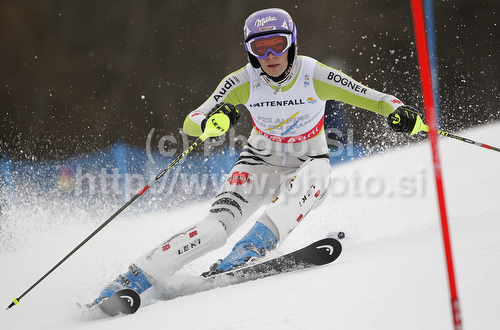 : Maria Riesch of Germany skiing in first run of Women slalom race of FIS alpine skiing World Championships in Garmisch-Partenkirchen, Germany. Women slalom race of FIS alpine skiing World Championships, was held on Saturday, 19th of February 2011, in Garmisch-Partenkirchen, Germany.