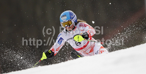 : Tanja Poutiainen of Finland skiing in first run of Women slalom race of FIS alpine skiing World Championships in Garmisch-Partenkirchen, Germany. Women slalom race of FIS alpine skiing World Championships, was held on Saturday, 19th of February 2011, in Garmisch-Partenkirchen, Germany.
