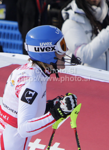: Winner Marlies Schild of Austria reacts in finish of second run of Women slalom race of FIS alpine skiing World Championships in Garmisch-Partenkirchen, Germany. Women slalom race of FIS alpine skiing World Championships, was held on Saturday, 19th of February 2011, in Garmisch-Partenkirchen, Germany.