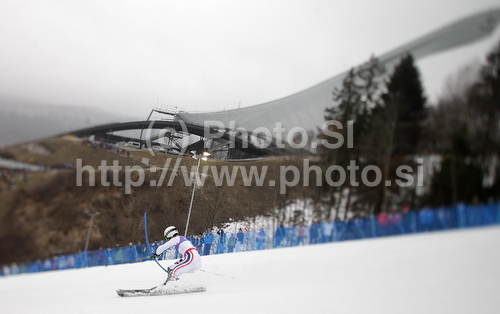 : Alexis Pinturault of France skiing in second run of Men slalom race of FIS alpine skiing World Championships in Garmisch-Partenkirchen, Germany. Men slalom race of FIS alpine skiing World Championships, was held on Sunday, 20th of February 2011, in Garmisch-Partenkirchen, Germany.