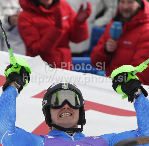 Garmisch-Partenkirchen ,Germany - 20.02.2011 : Second placed Jens Byggmark of Sweden reacts in finish of second run of Men slalom race of FIS alpine skiing World Championships in Garmisch-Partenkirchen, Germany. Men slalom race of FIS alpine skiing World Championships, was held on Sunday, 20th of February 2011, in Garmisch-Partenkirchen, Germany. Photo by: Mitja Smid Bricelj