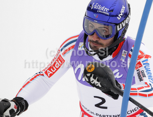 Garmisch-Partenkirchen ,Germany - 20.02.2011 : Jean-Baptiste Grange of France skiing in first run of Men slalom race of FIS alpine skiing World Championships in Garmisch-Partenkirchen, Germany. Men slalom race of FIS alpine skiing World Championships, was held on Sunday, 20th of February 2011, in Garmisch-Partenkirchen, Germany. Photo by: Primoz Jeroncic