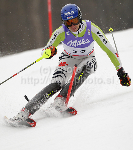 : Felix Neureuther of Germany skiing in first run of Men slalom race of FIS alpine skiing World Championships in Garmisch-Partenkirchen, Germany. Men slalom race of FIS alpine skiing World Championships, was held on Sunday, 20th of February 2011, in Garmisch-Partenkirchen, Germany.