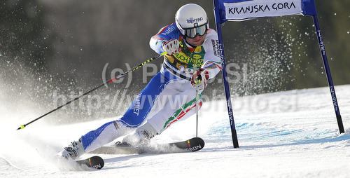 Kranjska Gora ,Slovenia - 05.03.2011 : Davide Simoncelli of Italy skiing in first run of Men giant slalom race of Audi FIS alpine skiing World Cup 2010-2011 in Kranjska Gora, Slovenia. Men giant slalom race of FIS alpine skiing World Championships, was held on Saturday, 5th of March 2011, in Kranjska Gora, Slovenia. Photo by: Primoz Jeroncic