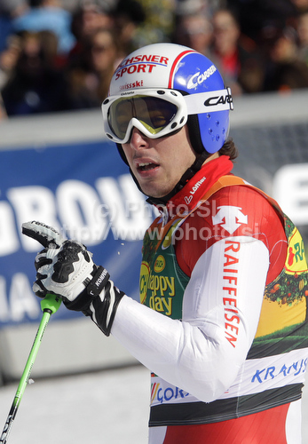 Kranjska Gora ,Slovenia - 05.03.2011 : Winner Carlo Janka of Switzerland reacts in finish of second run of Men giant slalom race of Audi FIS alpine skiing World Cup 2010-2011 in Kranjska Gora, Slovenia. Men giant slalom race of FIS alpine skiing World Championships, was held on Saturday, 5th of March 2011, in Kranjska Gora, Slovenia. Photo by: Leena Jeroncic