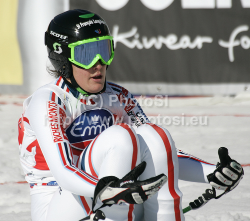 : Marion Pellissier of France reacts in finish of Women downhill race of Audi FIS alpine skiing World Cup 2010-2011 in Tarvisio, Italy. Women downhill race of Audi FIS alpine skiing World Cup 2010-2011, was held on Saturday, 5th of March 2011, in Tarvisio, Italy.