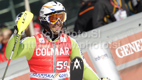 : Philipp Schmid of Germany reacts in finish of second run of Men slalom race of Audi FIS alpine skiing World Cup 2010-2011 in Kranjska Gora, Slovenia. Men slalom race of FIS alpine skiing World Championships, was held on Sunday, 6th of March 2011, in Kranjska Gora, Slovenia.