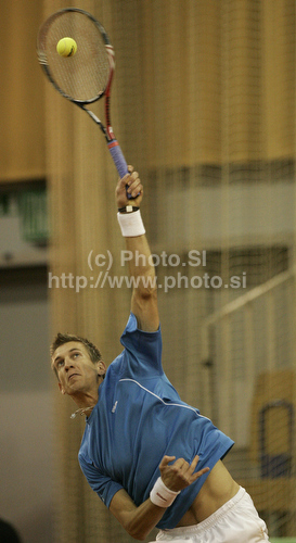 Ljubljana ,Slovenia - 06.03.2011 : Jarkko Nieminen of Finland during match of Davis Cup between Slovenia and Finland. Match between Jarkko Nieminen of Finland and Blaz Kavcic of Slovenia was held in Tivoli Arena in Ljubljana, Slovenia, on Sunday, 6th of March 2011. Photo by: Leena Jeroncic