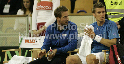 Ljubljana ,Slovenia - 06.03.2011 : Jarkko Nieminen (R) and captain of team Finland, Kim Tiilikainen (L) during match of Davis Cup between Slovenia and Finland. Match between Jarkko Nieminen of Finland and Blaz Kavcic of Slovenia was held in Tivoli Arena in Ljubljana, Slovenia, on Sunday, 6th of March 2011. Photo by: Leena Jeroncic