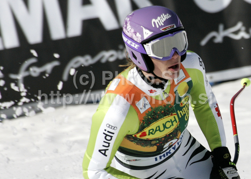 : Maria Riesch of Germany reacts in finish of Women super-g race of Audi FIS alpine skiing World Cup 2010-2011 in Tarvisio, Italy. Women super-g race of Audi FIS alpine skiing World Cup 2010-2011, was held on Sunday, 6th of March 2011, in Tarvisio, Italy.