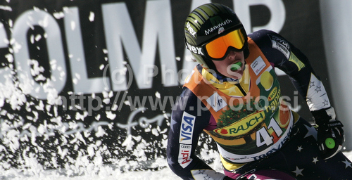 : Stacey Cook of USA reacts in finish of Women super-g race of Audi FIS alpine skiing World Cup 2010-2011 in Tarvisio, Italy. Women super-g race of Audi FIS alpine skiing World Cup 2010-2011, was held on Sunday, 6th of March 2011, in Tarvisio, Italy.