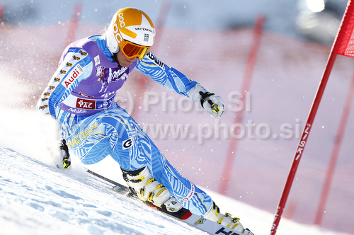 : Kajsa Kling of Sweden skiing in first run of women giant slalom race of Audi FIS Alpine skiing World cup in Soelden, Austria. First race of season 2011-2012 was held on Rettenbach glacier above Soelden, Austria, on Saturday, 22nd of October 2011.