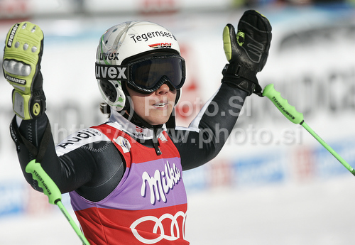 Soelden ,Austria - 22.10.2011 : Second placed Viktoria Rebensburg of Germany reacts in finish of second run of women giant slalom race of Audi FIS Alpine skiing World cup in Soelden, Austria. First race of season 2011-2012 was held on Rettenbach glacier above Soelden, Austria, on Saturday, 22nd of October 2011. Photo by: Leena Jeroncic