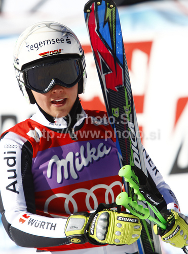 Soelden ,Austria - 22.10.2011 : Second placed Viktoria Rebensburg of Germany reacts in finish of second run of women giant slalom race of Audi FIS Alpine skiing World cup in Soelden, Austria. First race of season 2011-2012 was held on Rettenbach glacier above Soelden, Austria, on Saturday, 22nd of October 2011. Photo by: Primoz Jeroncic