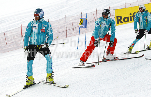 Soelden ,Austria - 23.10.2011 : Kalle Palander of Finland (L), Andreas Romar of Finland (M) and Marcus Sandell of Finland (R) during course inspection of men giant slalom race of Audi FIS Alpine skiing World cup in Soelden, Austria. First race of men season 2011-2012 was held on Rettenbach glacier above Soelden, Austria, on Sunday, 23rd of October 2011. Photo by: Primoz Jeroncic