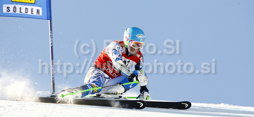 : Ted Ligety of USA skiing in first run of men giant slalom race of Audi FIS Alpine skiing World cup in Soelden, Austria. First race of men season 2011-2012 was held on Rettenbach glacier above Soelden, Austria, on Sunday, 23rd of October 2011.