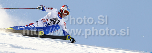 : Thomas Fanara of France skiing in first run of men giant slalom race of Audi FIS Alpine skiing World cup in Soelden, Austria. First race of men season 2011-2012 was held on Rettenbach glacier above Soelden, Austria, on Sunday, 23rd of October 2011.