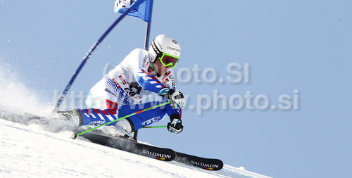 : Alexis Pinturault of France skiing in first run of men giant slalom race of Audi FIS Alpine skiing World cup in Soelden, Austria. First race of men season 2011-2012 was held on Rettenbach glacier above Soelden, Austria, on Sunday, 23rd of October 2011.