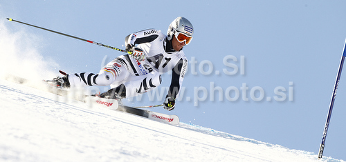 : Fritz Dopfer of Germany skiing in first run of men giant slalom race of Audi FIS Alpine skiing World cup in Soelden, Austria. First race of men season 2011-2012 was held on Rettenbach glacier above Soelden, Austria, on Sunday, 23rd of October 2011.