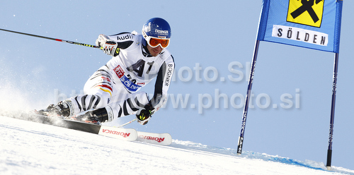 : Felix Neureuther of Germany skiing in first run of men giant slalom race of Audi FIS Alpine skiing World cup in Soelden, Austria. First race of men season 2011-2012 was held on Rettenbach glacier above Soelden, Austria, on Sunday, 23rd of October 2011.