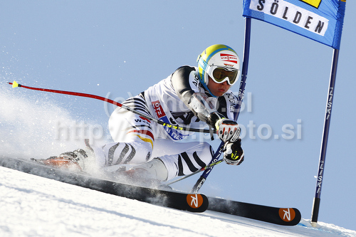 : Stefan Luitz of Germany skiing in first run of men giant slalom race of Audi FIS Alpine skiing World cup in Soelden, Austria. First race of men season 2011-2012 was held on Rettenbach glacier above Soelden, Austria, on Sunday, 23rd of October 2011.