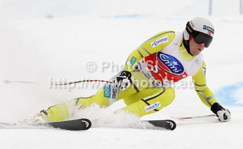 : Third placed Kjetil Jansrud of Norway skiing in Men Super-G race of Audi FIS alpine skiing World Cup in Val Gardena, Italy. Super-G race of Men Audi FIS Alpine skiing World Cup 2011 / 2012, was held on Friday, 16th of December 2011, on Saslong course in Val Gardena, Italy.