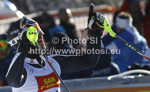 Alta Badia ,Italy - 19.12.2011 : Third placed Felix Neureuther of Germany reacts in finish of second run of men slalom race of Audi FIS Alpine skiing World cup in Alta Badia, Italy. Men slalom race of Audi FIS Alpine skiing World cup was held on Gran Risa course in Alta Badia, Italy on Monday, 19th of December 2011. Photo by: Primoz Jeroncic