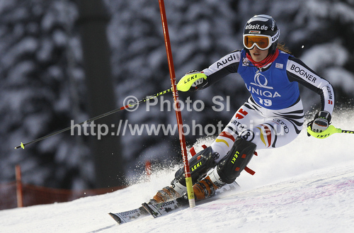 : Christina Geiger of Germany skiing in first run of women slalom race of Audi FIS Alpine skiing World cup in Flachau, Austria. Women slalom race of Audi FIS Alpine skiing World cup, which replaced canceled Levi race, was held in Flachau, Austria on Tuesday, 20th of December 2011.