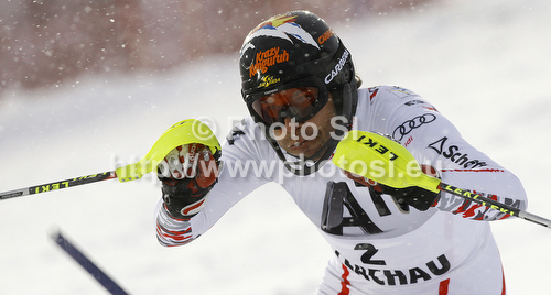 Flachau ,Austria - 21.12.2011 : Mario Matt of Austria skiing in first run of men slalom race of Audi FIS Alpine skiing World cup in Flachau, Austria. Men slalom race of Audi FIS Alpine skiing World cup, which replaced canceled Levi race, was held in Flachau, Austria on Wednesday, 21st of December 2011. Photo by: Primoz Jeroncic