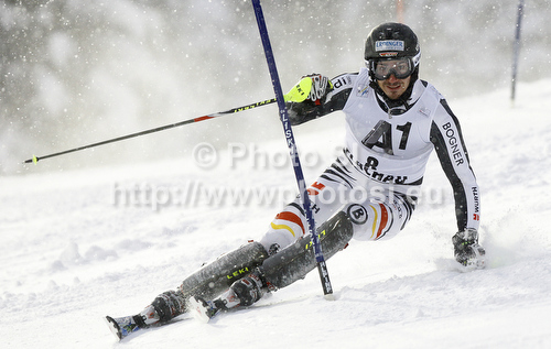 : Felix Neureuther of Germany skiing in first run of men slalom race of Audi FIS Alpine skiing World cup in Flachau, Austria. Men slalom race of Audi FIS Alpine skiing World cup, which replaced canceled Levi race, was held in Flachau, Austria on Wednesday, 21st of December 2011.