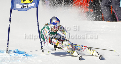 : Lindsey Vonn of USA skiing in first run of women giant slalom race of Audi FIS Alpine skiing World cup in Lienz, Austria. Women giant slalom race of Audi FIS Alpine skiing World cup was held in Lienz, Austria on Wednesday, 28th of December 2011.