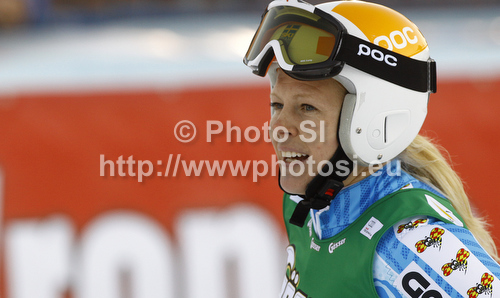 : Jessica Lindell-Vikarby of Sweden reacts in finish run of women giant slalom race of Audi FIS Alpine skiing World cup in Lienz, Austria. Women giant slalom race of Audi FIS Alpine skiing World cup was held in Lienz, Austria on Wednesday, 28th of December 2011.
