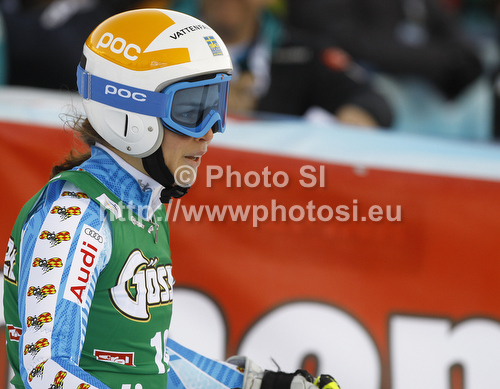 : Maria Pietilae-Holmner of Sweden reacts in finish of second run of women giant slalom race of Audi FIS Alpine skiing World cup in Lienz, Austria. Women giant slalom race of Audi FIS Alpine skiing World cup was held in Lienz, Austria on Wednesday, 28th of December 2011.