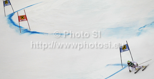 : Winner Anna Fenninger of Austria skiing in second run of women giant slalom race of Audi FIS Alpine skiing World cup in Lienz, Austria. Women giant slalom race of Audi FIS Alpine skiing World cup was held in Lienz, Austria on Wednesday, 28th of December 2011.