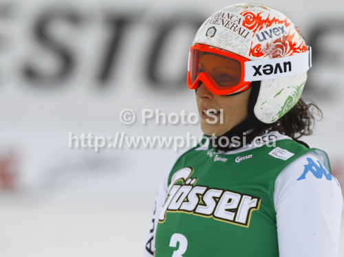 : Second placed Federica Brignone of Italy reacts in finish of second run of women giant slalom race of Audi FIS Alpine skiing World cup in Lienz, Austria. Women giant slalom race of Audi FIS Alpine skiing World cup was held in Lienz, Austria on Wednesday, 28th of December 2011.