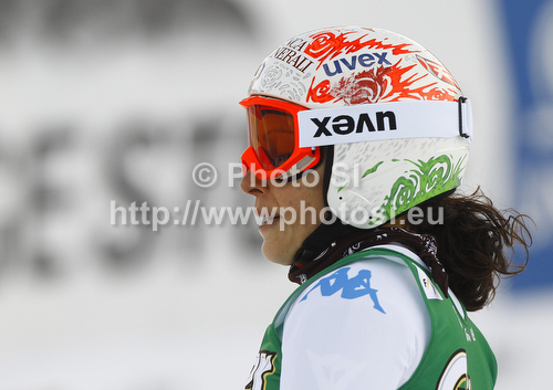 : Second placed Federica Brignone of Italy reacts in finish of second run of women giant slalom race of Audi FIS Alpine skiing World cup in Lienz, Austria. Women giant slalom race of Audi FIS Alpine skiing World cup was held in Lienz, Austria on Wednesday, 28th of December 2011.