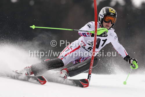 : Kathrin Zettel of Austria skiing in first run of women slalom race of Audi FIS Alpine skiing World cup in Lienz, Austria. Women slalom race of Audi FIS Alpine skiing World cup was held in Lienz, Austria on Thursday, 29th of December 2011.