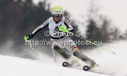 : Fanny Chmelar of Germany skiing in first run of women slalom race of Audi FIS Alpine skiing World cup in Lienz, Austria. Women slalom race of Audi FIS Alpine skiing World cup was held in Lienz, Austria on Thursday, 29th of December 2011.