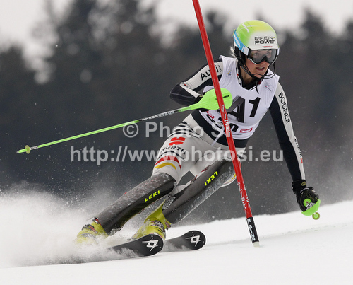 : Fanny Chmelar of Germany skiing in first run of women slalom race of Audi FIS Alpine skiing World cup in Lienz, Austria. Women slalom race of Audi FIS Alpine skiing World cup was held in Lienz, Austria on Thursday, 29th of December 2011.
