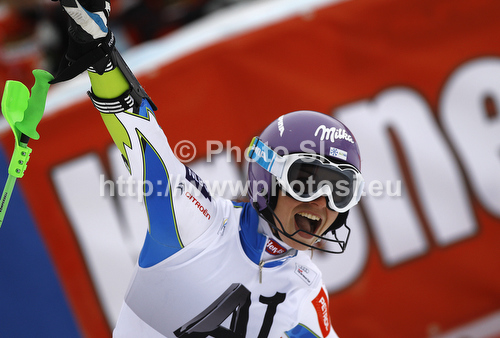 Lienz ,Austria - 29.12.2011 : Second placed Tina Maze of Slovenia reacts in finish of second run of women slalom race of Audi FIS Alpine skiing World cup in Lienz, Austria. Women slalom race of Audi FIS Alpine skiing World cup was held in Lienz, Austria on Thursday, 29th of December 2011. Photo by: Primoz Jeroncic